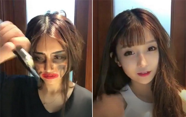 Ấn tượng đầu tiên của bạn trẻ về các cô nàng trong clip là những người rất... luộm thuộm, lớp trang điểm nhoe nhoét trên mặt, đầu xù tóc rối chẳng có điểm gì thu hút. Ấy vậy mà, chỉ sau một động tác hất mái tóc hay cuối mặt và ngẩng lên, các cô gái đã lột xác thành người hoàn toàn khác: ai cũng xinh đẹp, da trắng, mắt to, miệng chúm chím như hot girl.