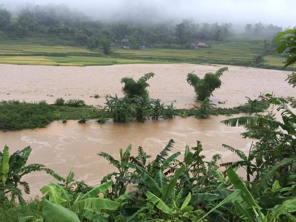 Nhiều diện tích hoa màu bị ngập sâu trong nước ở huyện Văn Bàn. Ảnh: báo Lào Cai