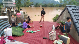 Người dân trèo lên nóc nhà khi nước lũ dâng cao. Nguồn: MXH