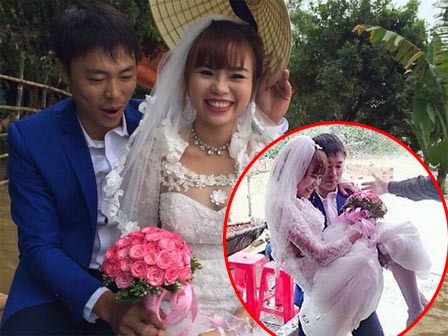 "Nước lũ lớn, có đoạn ngồi trên thuyền tròng trành như muốn ngã mà cũng khá run vì sợ váy, đồ ướt sẽ không tổ chức được lễ. Về đến gần nhà, nước cạn thuyền không vào được nên tôi phải bế cô dâu một đoạn vào hội trường cưới.