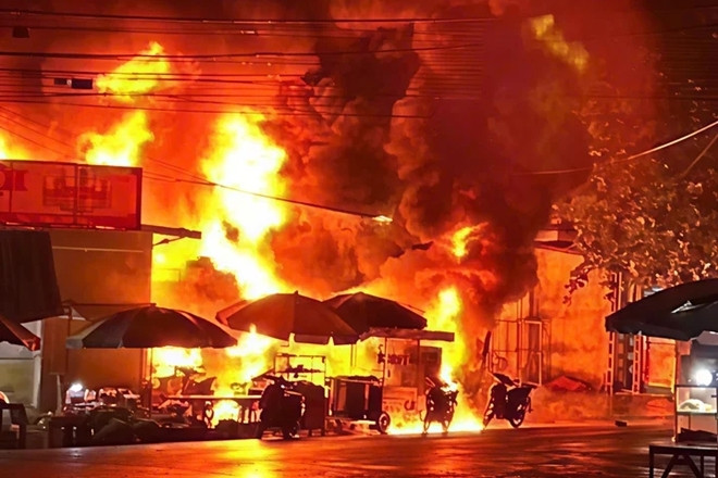 Khoảng 2h cùng ngày, lửa và khói xuất hiện tại một ki-ốt Chợ Lô 6, vị trí giao lộ Đỗ Đăng Tuyển-Tỉnh lộ 7. Phát hiện cháy, người dân hô hoán rồi cầm nhiều thiết bị chữa cháy, kéo vòi nước để tiếp cận dập lửa nhưng bất thành.