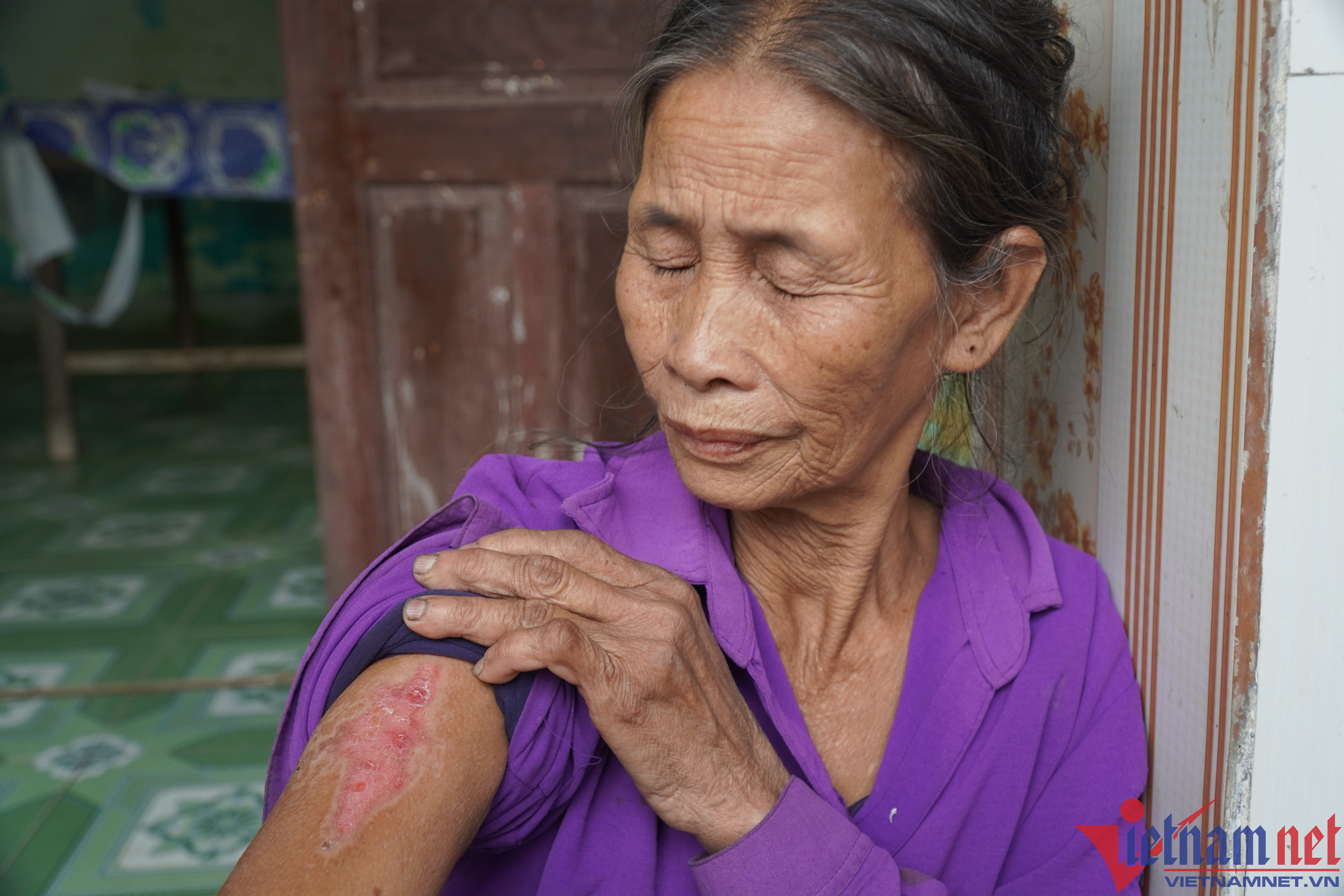 Bà Diến bị bỏng trong lúc dập lửa