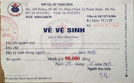 Ngày 22.4, chị Bùi Thu Hương ở tổ dân phố Đình (phường Đại Mỗ, quận Nam Từ Liêm) cho biết, trong bữa cơm chiều gia đình nói chuyện về các loại phí, chồng chị cho biết cách đây vài tuần anh đã nộp phí vệ sinh là 265.000 đồng (cả năm 2014 cho gia đình 4 người)... Chị Hương tá hỏa bởi trước tết cũng đã có người đến thu phí vệ sinh của gia đình chị với số tiền là 288.000 đồng, cũng nói là tiền vệ sinh năm 2014.