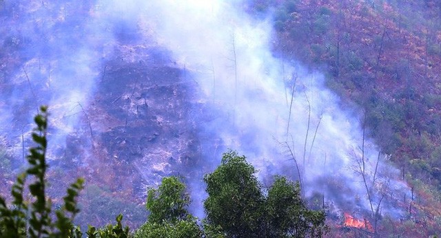 Cho đến trưa 1-7, rừng ở xã Trường Sơn (huyện Đức Thọ, Hà Tĩnh) vẫn còn cháy.