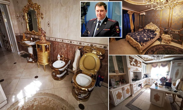 Lục soát căn nhà toàn vàng của sĩ quan tham nhũng, cảnh sát phát hiện vật dụng sáng lấp lánh trong nhà tắm với giá trị khổng lồ