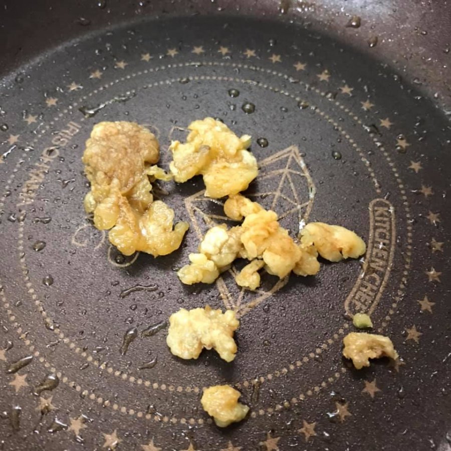 - Trong lúc đang luộc gà thì mang mỡ gà lấy từ bụng và cổ gà đi áp chảo cho ra nước mỡ.