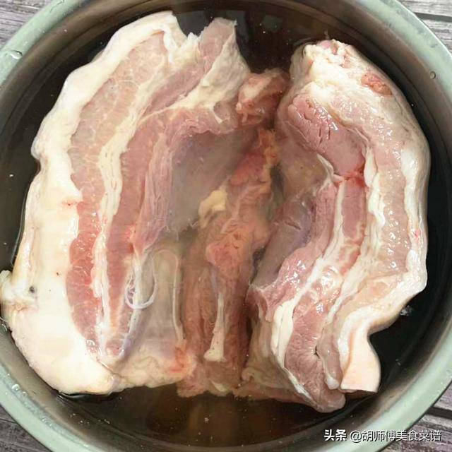 Sau khi ngâm thịt lợn, rửa lại 1 lần, sau đó cho thịt lợn, gừng, nấu rượu với lượng thích hợp vào nồi, thêm lượng nước lạnh vừa phải. Đun sôi thịt ở lửa lớn cho đến khi thịt chín tới.