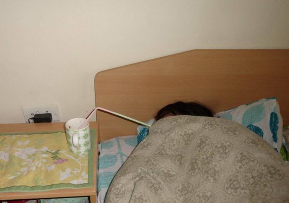 Vừa ngủ mà vẫn có thể uống nước.