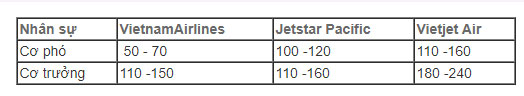 Bảng thu nhập của phi công 3 hãng hàng không Việt