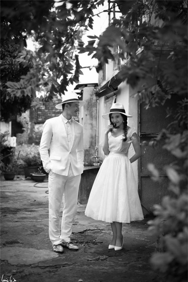 Thúy Diễm và chồng sắp cưới, hóa thân thành đôi tình nhân của những thập niên trước.