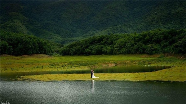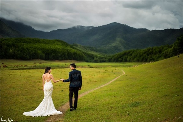 Bối cảnh đồng cỏ đẹp mênh mông cho ảnh cưới của đôi trai tài gái sắc.