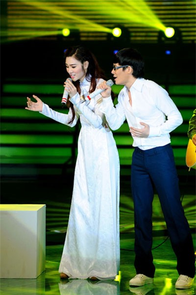 Nathan Lee và Ngọc Oanh hát nhạc phim. |
