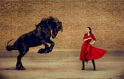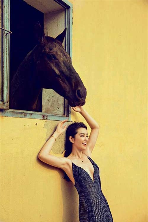Concept với ngựa giúp Lý Băng Băng khoe được nét gợi cảm, khỏe khoắn và cá tính. |