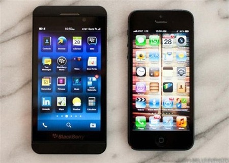 Màn hình của Z10 có độ phân giải 1280x768p, tương đương 355 p/inch, cao hơn so với mật độ 326p/inch của iPhone 5. Màu sắc hiển thị sâu, ký tự sắc nét, nhưng độ sáng của iPhone 5 bỏ xa Z10.