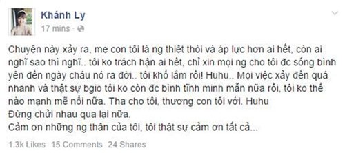 trang Facebook cá nhân, Khánh Ly đăng một status khá dài để trải lòng