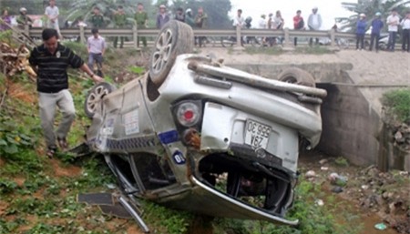 địa phận Yên Bình, ba tên cướp để lạc tay lái lao xuống suối và lập tức