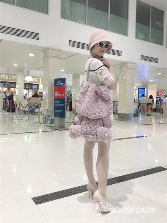 Lý Nhã Kỳ xinh đẹp như cô tiểu thư tại sân bay. Lý Nhã Kỳ tiếp tục gây chú ý về độ chịu chơi khi cô đeo chiếc túi xách bản giới hạn của Hello Kitty.