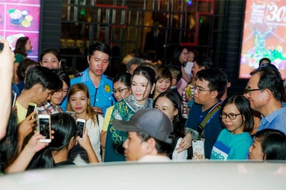 Lý Nhã Kỳ đã gây “náo loạn” một đoạn đường thuộc Phố đi bộ. Hàng trăm fan đã vây kín kiều nữ họ Lý chụp ảnh. Chiều lòng fan, người đẹp cũng đã cố gắng tận dụng tối đa thời gian để tạo dáng chụp selfie với người hâm mộ. Với những fan nhỏ, Lý Nhã Kỳ đã chịu khó cúi thấp người, liên tục nói lời cám ơn.