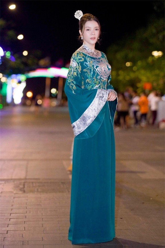 Lễ hội áo dài TP.HCM 2018 là sự kiện hiếm hoi Lý Nhã Kỳ nhận lời tham dự với tư cách khách mời. Cô chọn áo dài tông xanh có phần tay cách điệu, thêu cầu kỳ, theo phong cách vương tôn quý tộc phong kiến. Trang phục vừa vặn với vóc dáng, tôn được làn da trắng sứ và thần thái thanh cao của kiều nữ. Trang sức ngọc trai tinh tế của Paolo Piovan càng tôn lên vẻ đài các, cổ điển, trông như một hoàng hậu thời xưa.