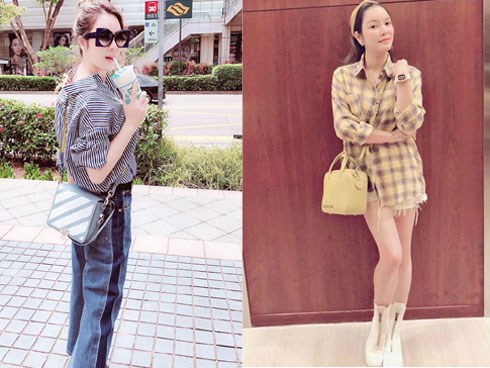 Lý Nhã Kỳ khéo chọn sơ mi giúp cô trẻ trung và năng động.