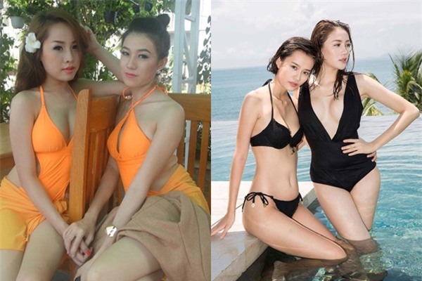 Khuôn ngực đầy đặn một cách bất thường của Lê Hà (phải) khiến cô vướng nghi án "nâng cấp" vòng 1 (trái)