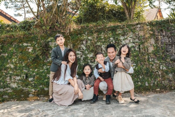 Minh Hà chắc hẳn đã suy nghĩ và chuẩn bị rất nhiều để có được những bộ trang phục tươm tất, thời thượng thế này cho cả nhà 6 người.