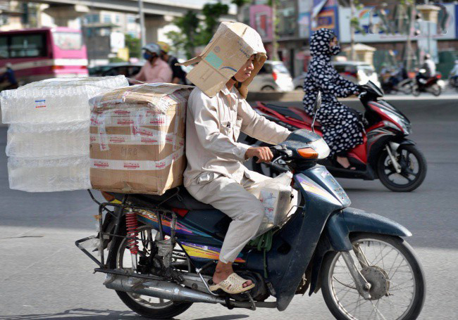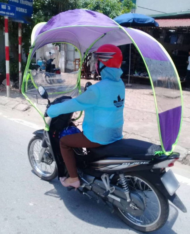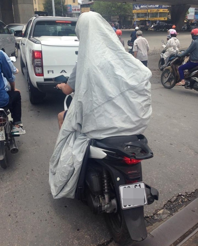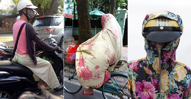 Khoác hẳn chăn ra đường chỉ để chống nóng.