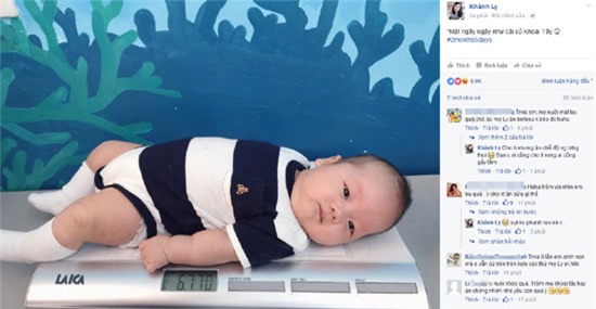 Mới đây nhất, Ly kute đăng ảnh bụ bẫm, kháu khỉnh của bé Khoai Tây nhận được rất nhiều quan tâm và lời khen ngợi của mọi người. Trộm vía, Khoai Tây mới 2 tháng 5 ngày những đã nặng 6.8kg.