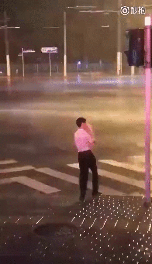 Đoạn video ngắn ghi lại cảnh tượng một người đàn ông trẻ tuổi hiên ngang đứng hút thuốc giữa trời mưa bão hiện đang được chia sẻ rộng rãi trên khắp các trang mạng Trung Quốc.