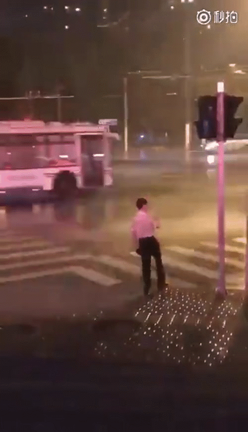 Qua những hình ảnh được camera của một người đang đứng trú mưa ghi lại, có thể thấy người đàn ông này tỏ ra hết sức bất cần. Trong lúc ai nấy đều hớt hải tìm chỗ trú chân hoặc lao thật nhanh về nhà để tránh những ảnh hưởng của siêu bão Hato thì anh ta lại chẳng ngại mưa gió, bình thản hút nốt điếu thuốc đang cháy dở rồi điềm nhiên băng qua đường.