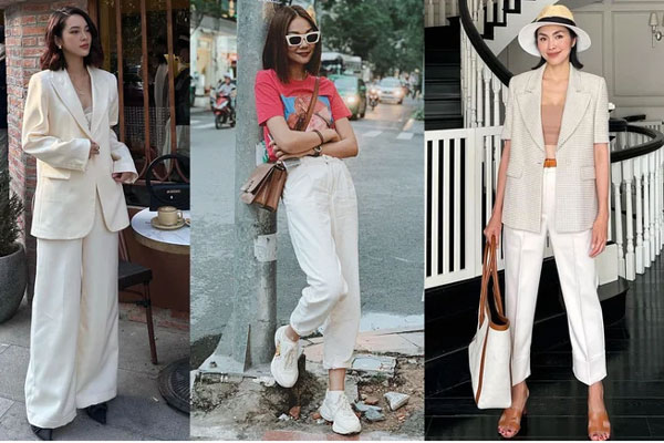 Quần trắng là một món thời trang dễ phối đồ. Item này giúp vẻ ngoài của người diện thêm trẻ trung, nhưng vẫn toát lên sự trang nhã, thanh lịch. Với công dụng nâng tầm phong cách của quần trắng, các mỹ nhân Việt sành điệu cũng không thể bỏ qua item này khi hoàn thiện style. Họ diện quần trắng theo những cách đa dạng. Vì vậy, nếu chị em muốn có nhiều ý tưởng để lên đồ với quần trắng, hãy tham khảo 10 công thức sau đây của các mỹ nhân Việt.