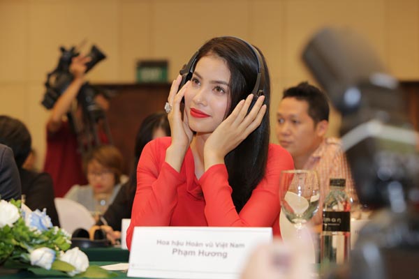 Cũng như Thu Minh, Phạm Hương vẫn tươi tắn và thể hiện đúng phong thái của một người đẹp chuyên nghiệp