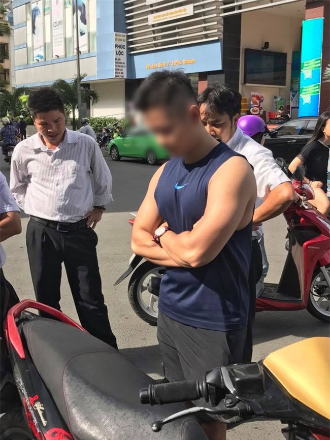 "Không đội nón bảo hiểm, lại còn va vào xe taxi, cứ gọi công an đến giải quyết đi. Đồng hồ hay giày hàng hiệu nếu va chạm thì cũng xước, giày đi bị chà thì cũng xước thôi, làm khó người ta. Mua được giày Adidas, đồng hồ xịn, đi tập gym mà nằng nặc đòi người ta thêm 200k", một người có mặt lên tiếng.