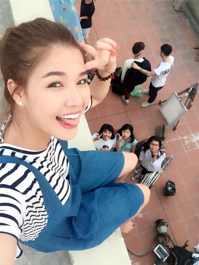 Cô nàng nhí nhảnh chụp ảnh cùng fan.