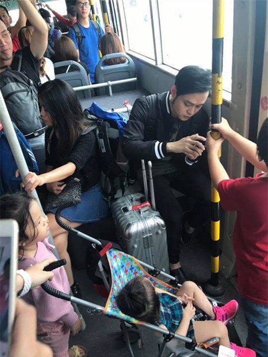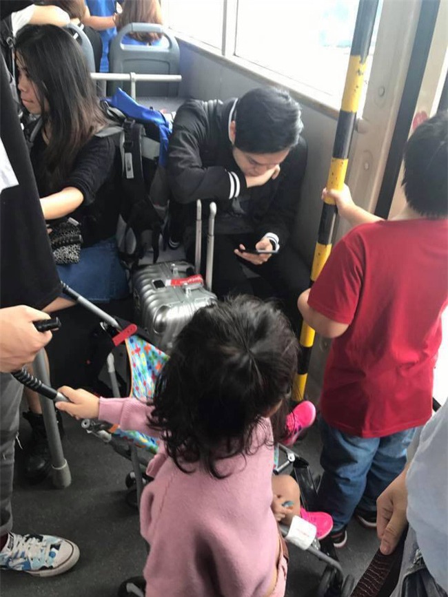 Hình ảnh Quang Vinh bình thản ngồi trên ghế dù có trẻ em phải đứng ngay trước mắt được một cư dân mạng chụp lại và đăng tải lên Facebook.