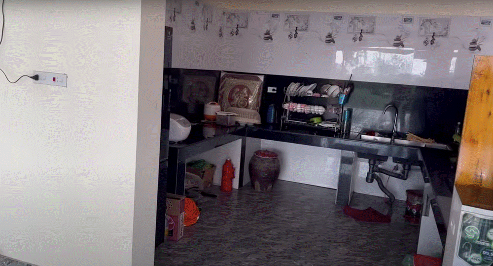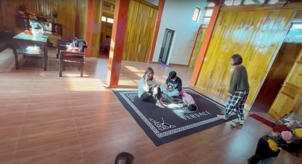 Diện tích ở trên của căn nhà sàn là 210m2, gồm 4 phòng ngủ, phòng khách rộng rãi, có ti vi lớn, bàn ghế để cả nhà cùng ngồi chơi.