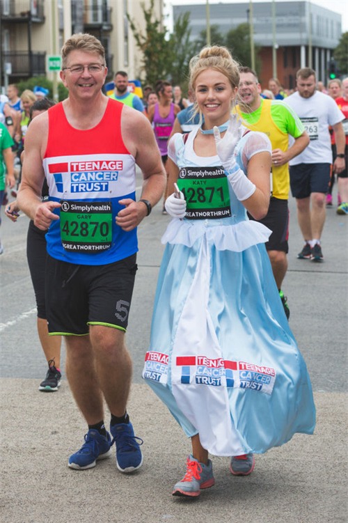 Khi Katy được 17 tuổi - tuổi nhỏ nhất được tham gia cuộc thi chạy Great North Run - cô bạn quyết định sẽ tham gia cuộc thi chạy này và mặc bộ trang phục của Lọ Lem để chạy chứ không phải bất kì trang phục thể thao nào khác. Nhiều người sẽ thắc mắc vì sao Katy phải “làm màu” như thế nhưng thực ra, cô bạn chỉ có 1 lý do hết sức tuyệt vời mà thôi: quyên góp tiền cho quỹ Teenage Cancer Trust. Cuối cùng, Katy đã quyên góp được 1.200 bảng Anh (khoảng 37 triệu đồng), vượt xa mục tiêu ban đầu là 800 bảng Anh. Dù cuộc đua đã kết thúc nhưng Katy vẫn cố gắng tiếp tục gây quỹ.