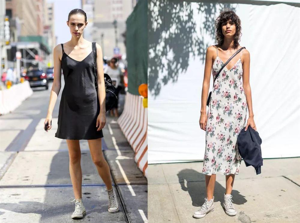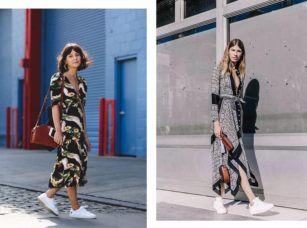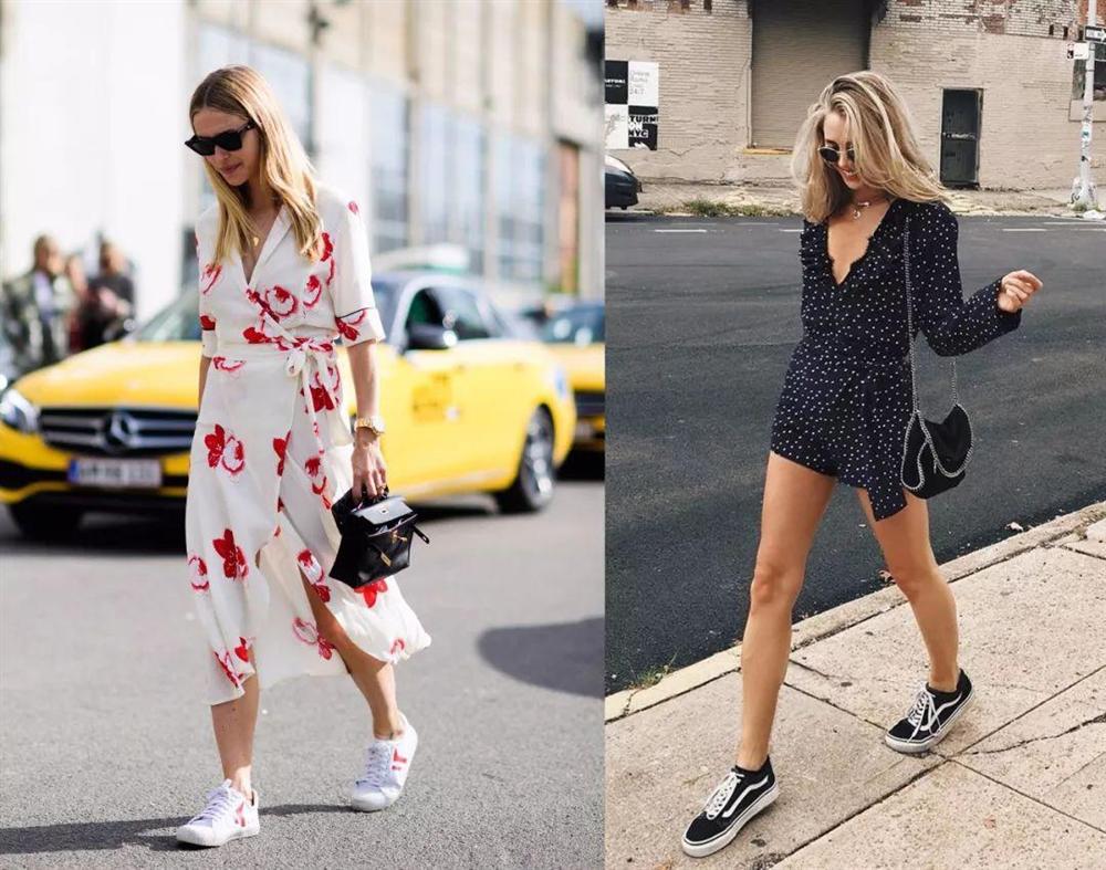 Váy mùa hè thường có màu sắc bắt mắt hoặc in họa tiết nổi bật nên một đôi giày thể thao màu trắng là lựa chọn rất hợp lý để kết hợp cùng. Nhưng để tạo vẻ nữ tính, bạn nên chọn một đôi giày phom nhỏ để cân đối với dáng váy mùa hè xinh xắn, không nên chọn phom giày quá thô, quá to.