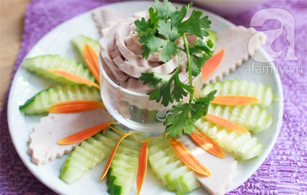 Bày ra đĩa và trang trí thêm với dưa leo hay các loại rau củ khác, thế là bạn có ngay một đĩa giò đẹp xinh bày mâm tiệc Tết rồi!