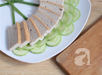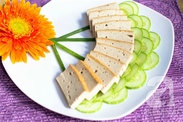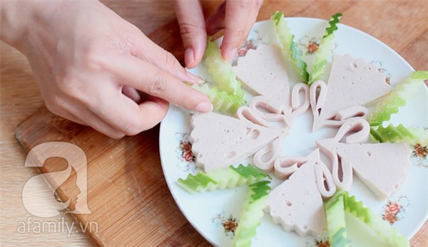 để làm trụ). Bày thêm dưa leo và vài lát giò xung quanh đĩa bên dưới là
