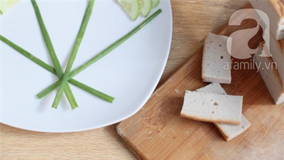 ![]() | ![]() Chẻ cọng hành lá làm đôi tạo thành khung cái quạt. |