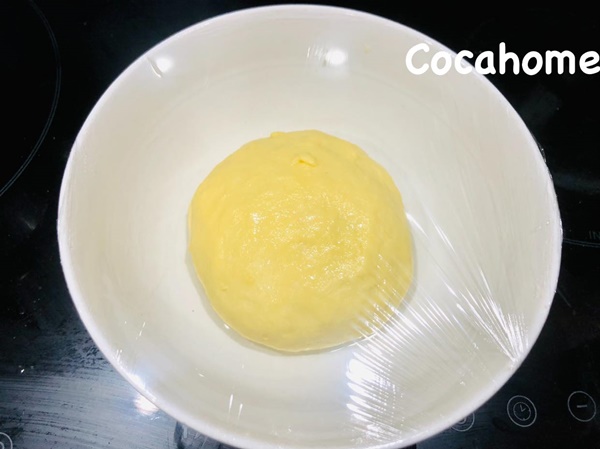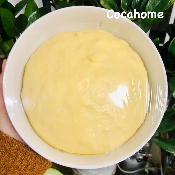 - Quét chút dầu ăn vào bát và cho khối bột vào. Bọc màng bọc thực phầm và ủ cho đến khi khối bột nở gấp đôi (tầm 45-60 phút) tuỳ nhiệt độ.