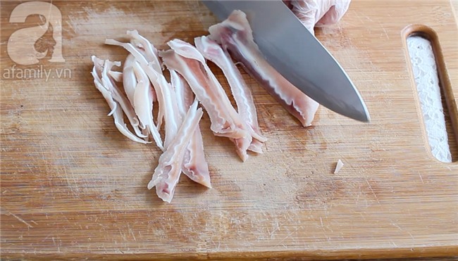 Lưu ý: Luộc thịt chín khoảng 80% là được vì thịt sẽ còn qua giai đoạn xào sau đó.