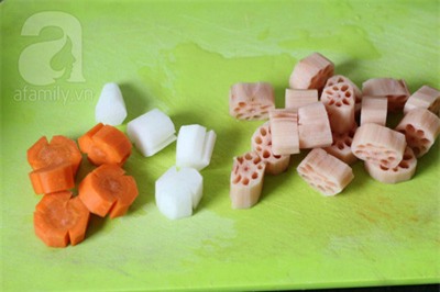Củ sen tươi, cà rốt, củ cải trắng cắt khúc vừa ăn