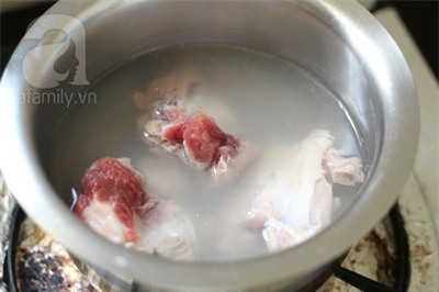 Sườn sau khi đã rửa sạch cho vào nồi nước luộc sơ sau đó vớt ra