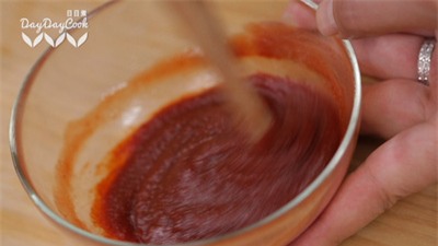 ![]() | ![]() Cho xốt cà chua, tương ớt Hàn Quốc và đường vào 1 bát nhỏ trộn đều |