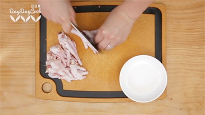 ![]() | ![]() Đầu tiên, bạn rửa chân gà thật sạch rồi thái miếng vừa ăn |