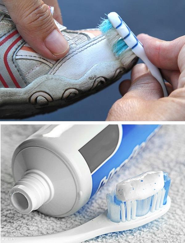Không chỉ có tác dụng làm sạch “bộ nhá” mà kem đánh răng còn “thần thánh” hơn bạn tưởng đấy. Đối với những vết ố, vêt bẩn khó làm sạch, hãy bôi một ít kem đánh răng lên vị trí đó, kết hợp với bàn chải chà xát rồi làm sạch lại bằng khăn ẩm. Bạn cũng có thể dùng kem đánh răng vệ sinh những bộ phận trên giày có chất liệu cao su, nhựa mềm, sẽ rất hiệu quả.