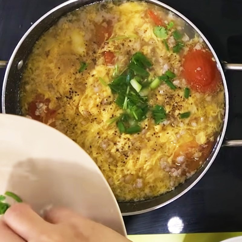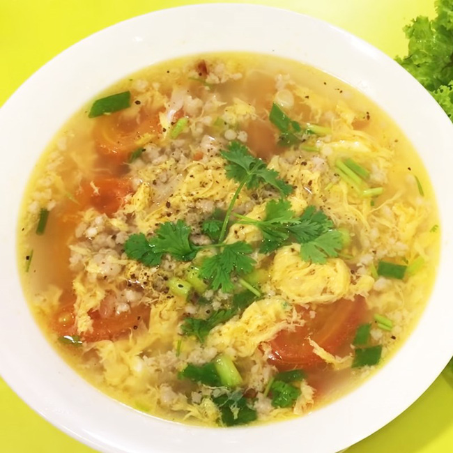 Như vậy là chị em đã hoàn thành xong món canh trứng cùng cà chua và thịt lợn băm rồi!