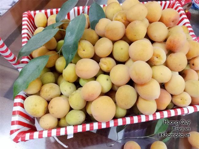 Làm lần lượt đến hết nguyên liệu. Vớt mơ ra rổ để ráo.